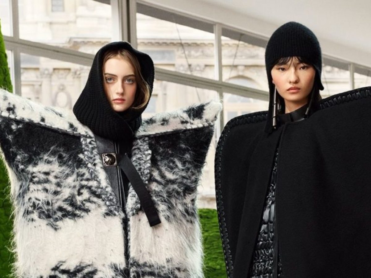 Η πασαρέλα, στημένη στην αυλή του Μουσείου του Λούβρου, μεταμορφώθηκε σε ένα σχεδόν φουτουριστικό ορεινό τοπίο, με πράσινες κορυφές και γεωμετρικές κατασκευές που παρέπεμπαν σε ένα αφαιρετικό φυσικό περιβάλλον. Μέσα σε αυτό το σκηνικό, τα looks κινήθηκαν ανάμεσα στο φολκλόρ και την avant-garde αισθητική που χαρακτηρίζει τον Ghesquière.