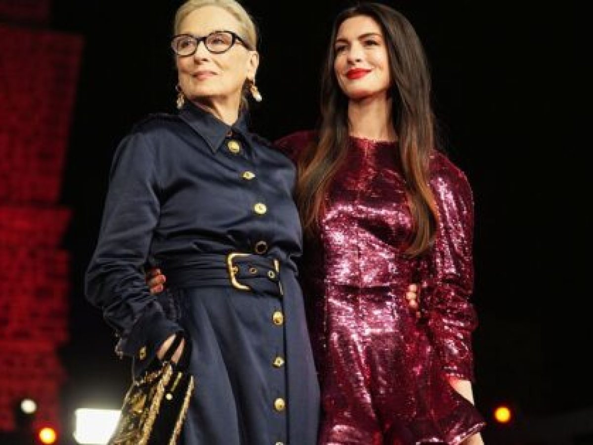 Η Meryl Streep επέλεξε ένα navy maxi shirt dress από τον οίκο Schiaparelli, με τα χαρακτηριστικά χρυσαφένια κουμπιά του οίκου. Το συνδύασε με χρυσά σκουλαρίκια σε σχήμα σταγόνας και την εμβληματική face bag του οίκου. Ένα look που της ταιριάζει απόλυτα: αβίαστο, κομψό χωρίς να γίνεται επιτηδευμένο. Οι χρυσές λεπτομέρειες προσθέτουν χαρακτήρα, ενώ οι καθαρές γραμμές διατηρούν το αποτέλεσμα προσεγμένο και εκλεπτυσμένο.