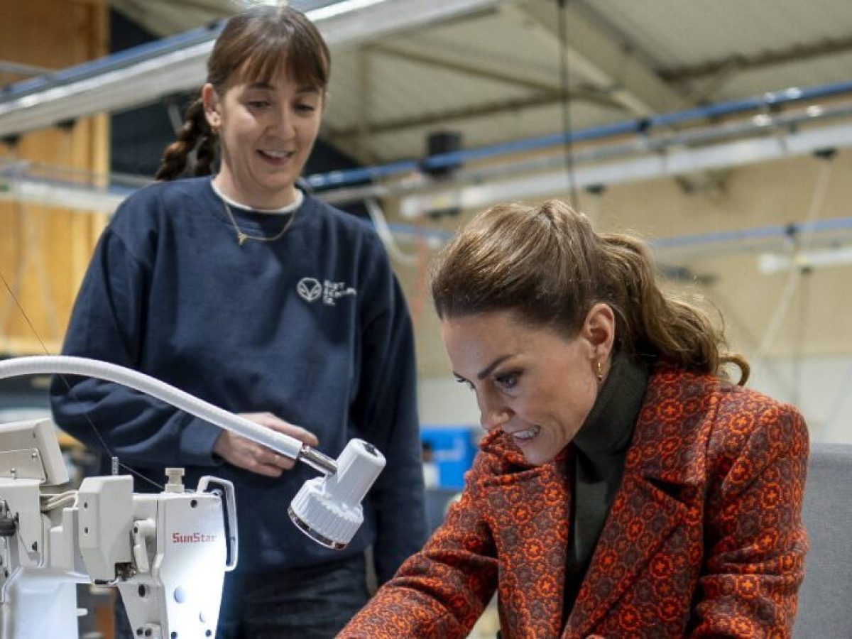 Εκεί, η Kate Middleton κάθισε σε μια ραπτομηχανή και έραψε η ίδια μια ετικέτα σε ένα τζιν που προορίζεται για δώρο στον Πρίγκιπα William, δηλώνοντας με χαμόγελο πως είναι σίγουρη ότι θα το λατρέψει. Το στιγμιότυπο με την Πριγκίπισσα να εργάζεται συγκέντρωσε αμέσως το ενδιαφέρον του διαδικτύου και έγινε viral.