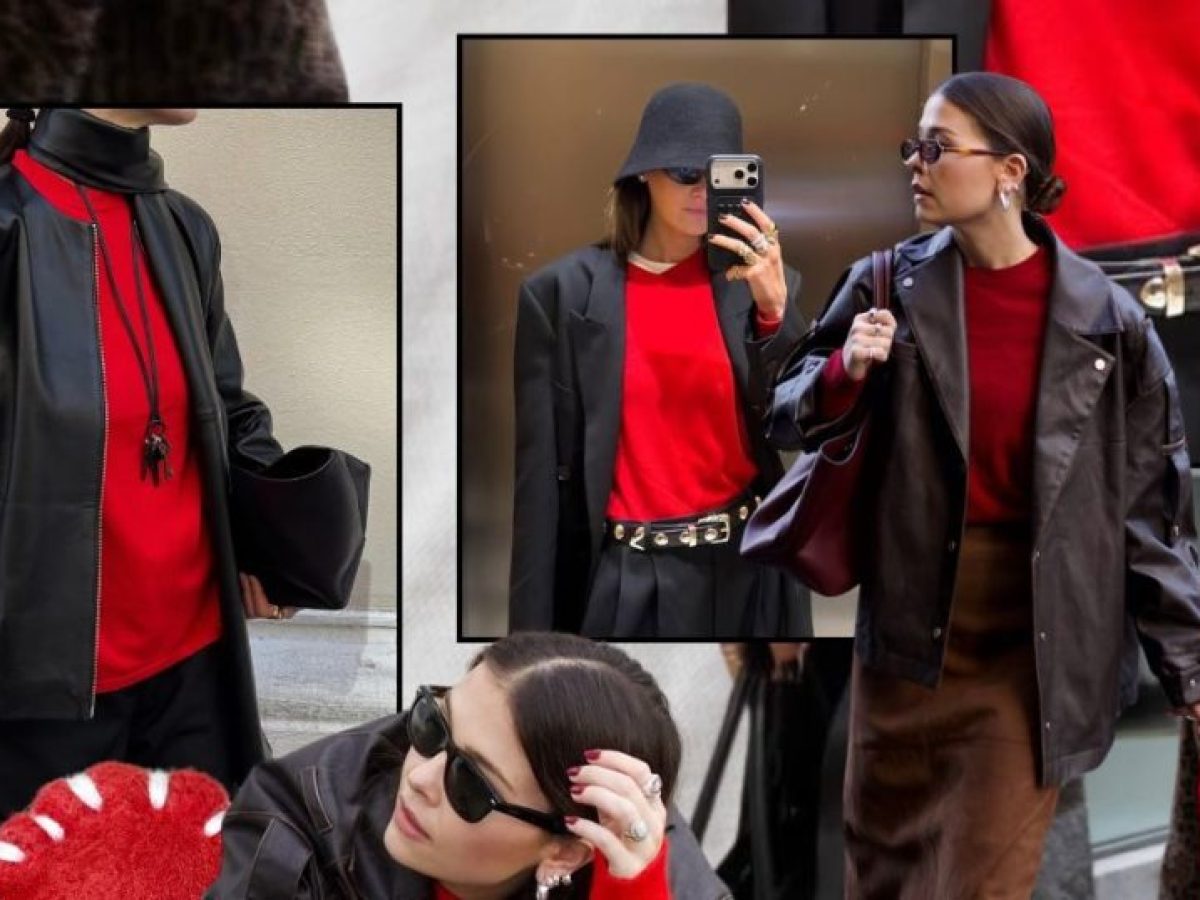 Τα κόκκινα πουλόβερ εμφανίζονται όπως ντύνονται οι άνθρωποι στην πραγματική ζωή: με ίσια τζιν, χαλαρές γραμμές, μακριά παλτά, sneakers ή μπότες φορεμένες βιαστικά πριν βγεις από το σπίτι. Τίποτα υπερβολικό. Τίποτα στημένο. Μόνο στιλ που λειτουργεί — και πάντα ξεχωρίζει.